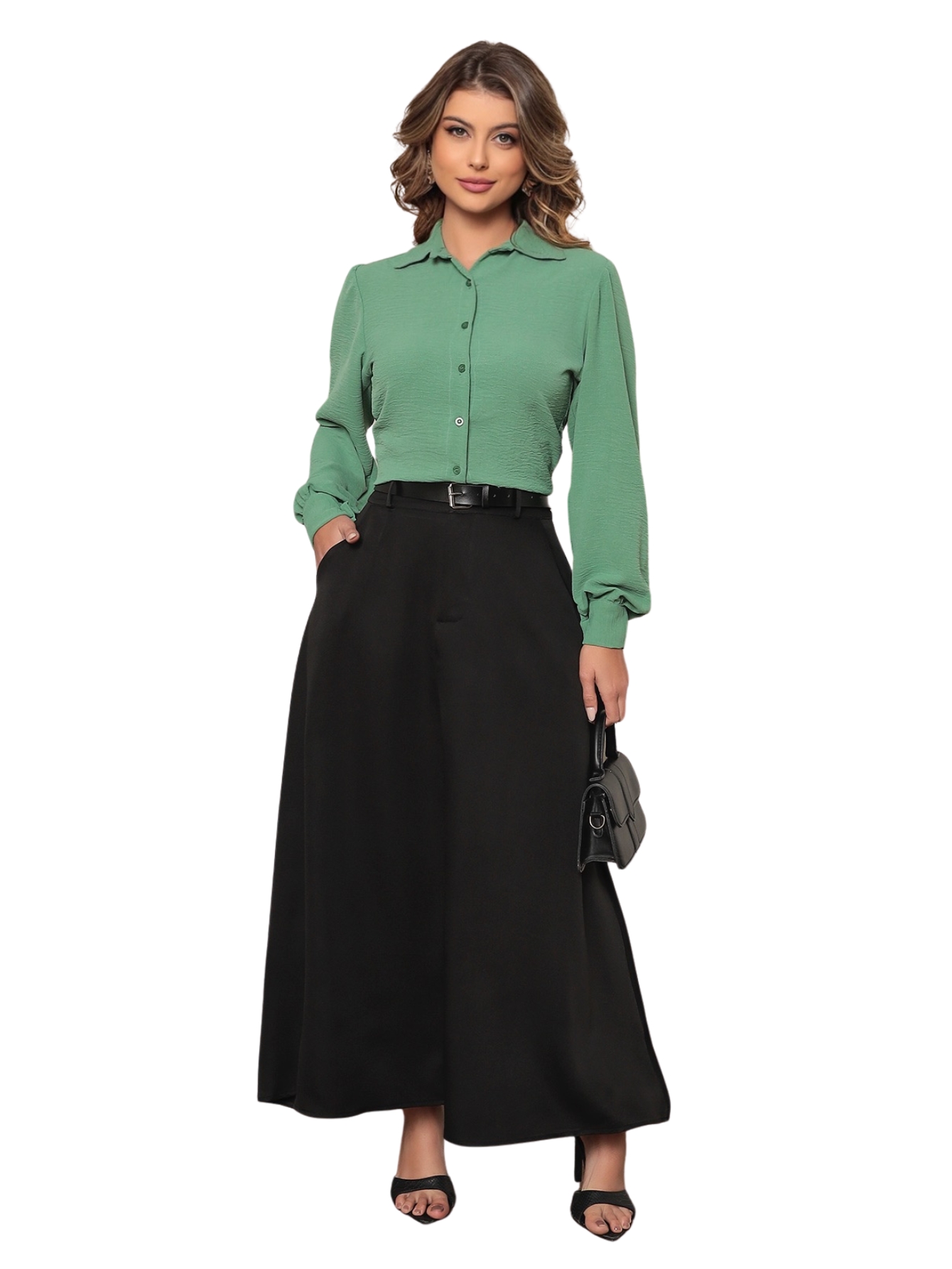 Combine com blusas de manga curta ou longa para diferentes estações. Ideal para eventos religiosos, trabalho ou ocasiões especiais. Para conservar, evite lavagem à máquina e prefira limpeza delicada à mão ou a seco. Visual elegante com conforto, garanta a sua saia e destaque o estilo.